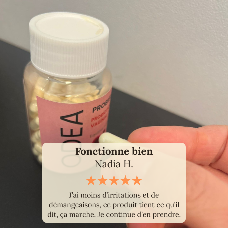 ODEA contribue à rétablir et maintenir une flore vaginale saine. Ses probiotiques aident à réduire les déséquilibres, favorisent le confort intime, limitent les mauvaises odeurs et soutiennent la prévention des infections courantes comme les mycoses ou les vaginoses.